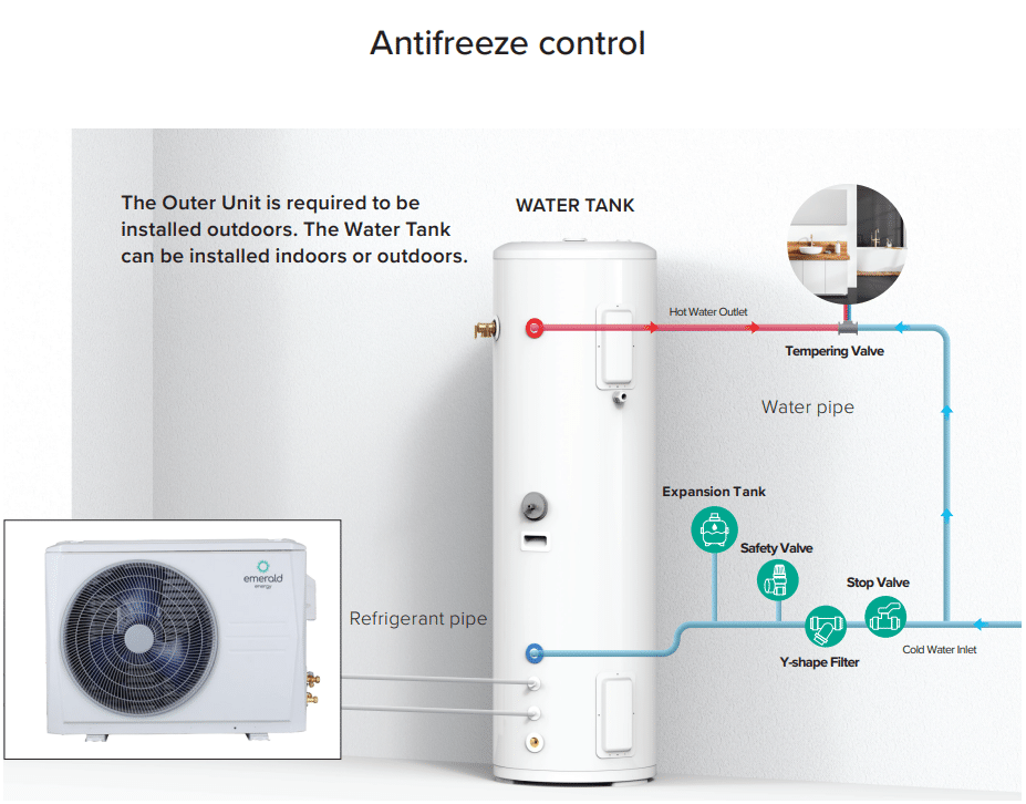 SPLIT SYSTEM - HEAT PUMP AND TANK