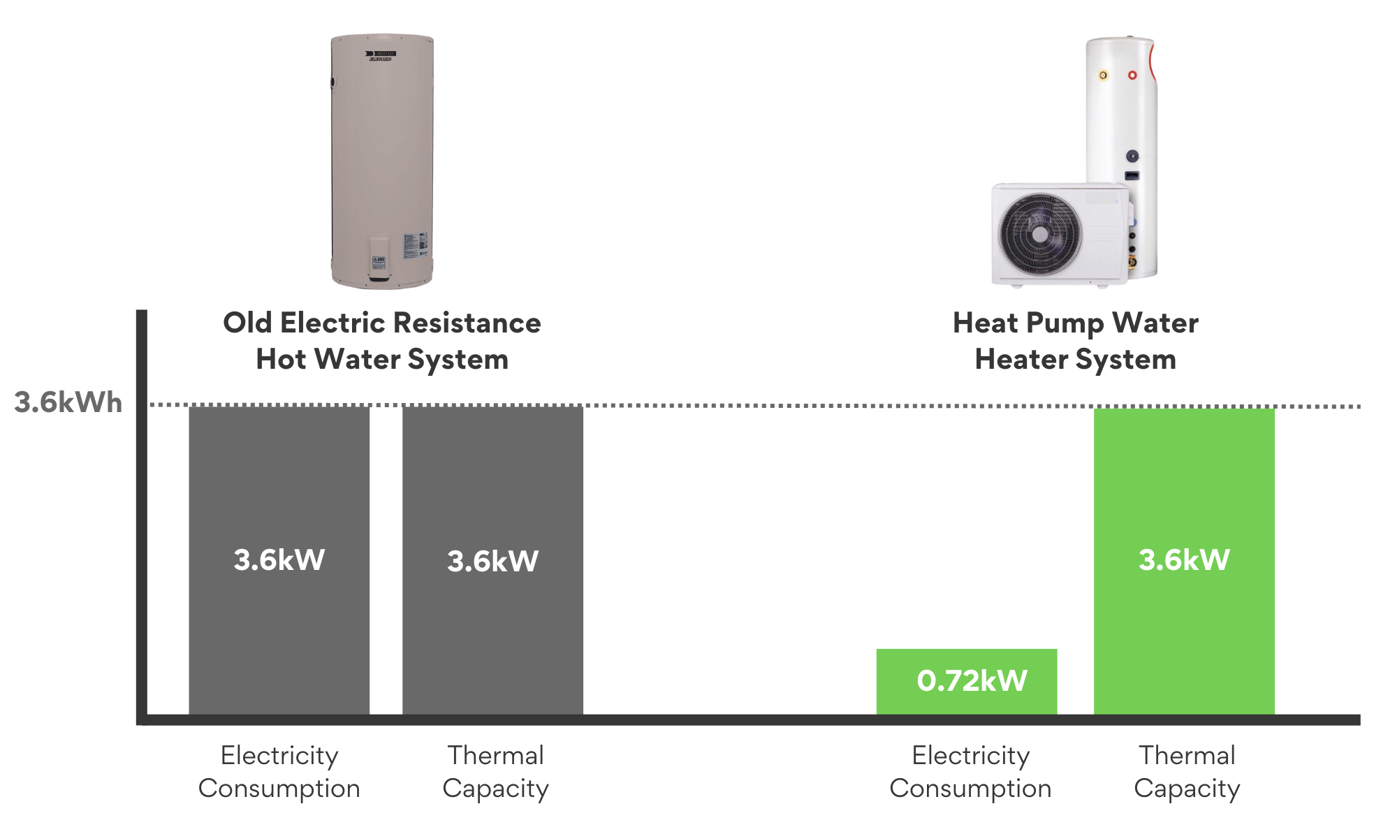There are several factors (like local climate, amount of daily water usage and energy tariff) that influence the amount of energy savings. Heat pump powered water heaters are 200-350% more energy-efficient (and consume 60-75% less electricity) than heating element based resistance water heaters. A typical 190 litres heat pump water heater consumes about 2.5 kWh/day. If we extrapolate this data, you’d get $182.5 (@20 cents/kWh) energy bill for water heating in a year. A conventional 190 litres electric resistance water heater consumes about 10KWh/day and, 3650 kWh a year — which equals to $730 (@20 cents/kWh) in a year. So, the heat pump in this case would save you about $547 in a year.